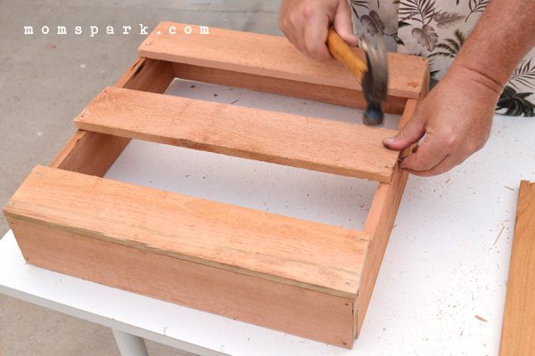 Hammer on your backside, and when completed, pry off either the top or bottom piece so you can plant succulents up there, too! Reinforce with trim nails if necessary.