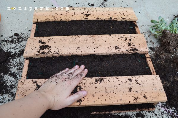 Do your best to kind of pat the soil down, but know it’s going to get everywhere throughout the planting process.