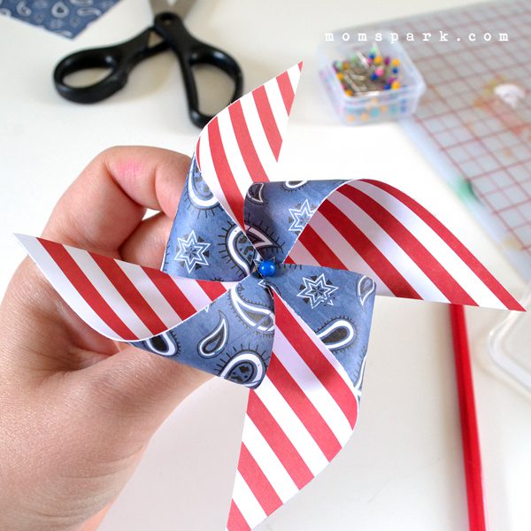 DIY: Fourth of July Paper PinwheelsTake your pushpin and run it through the center point of your square.