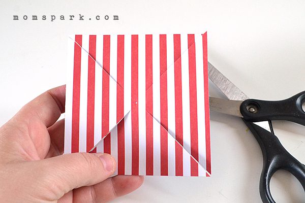 Make cuts from the corners to the center, leaving about a quarter of an inch of paper uncut.