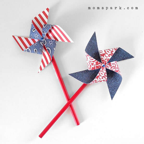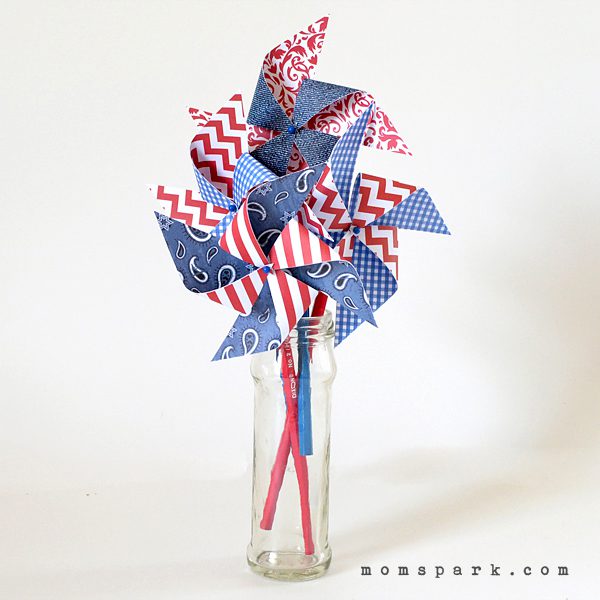 These fab July 4th paper or Memorial Day pinwheel spinners are great for fun for the kids, but they also make some pretty awesome decor.
