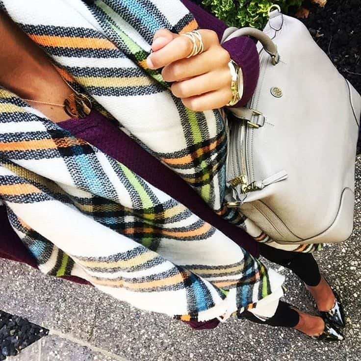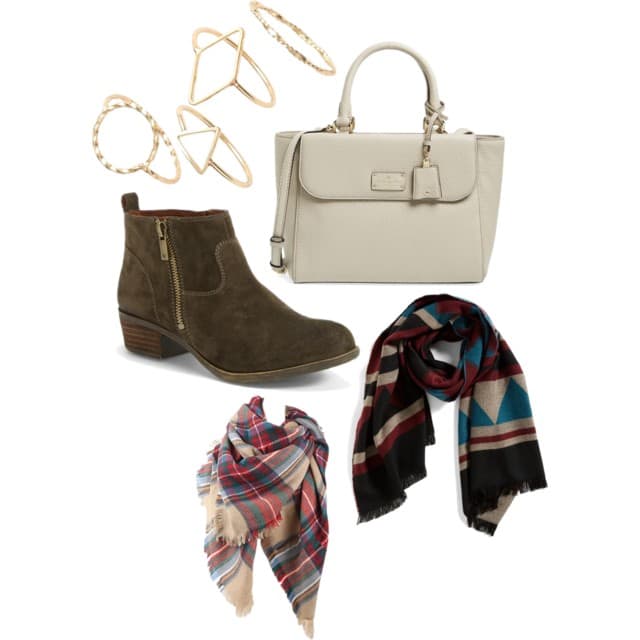 Geometric Ring Set | Kate Spade Kendall Court Satchel | Lucky Brand Betwixt Bootie | Traveller Runway Geometric Print Scarf | Colorful Plaid Scarf