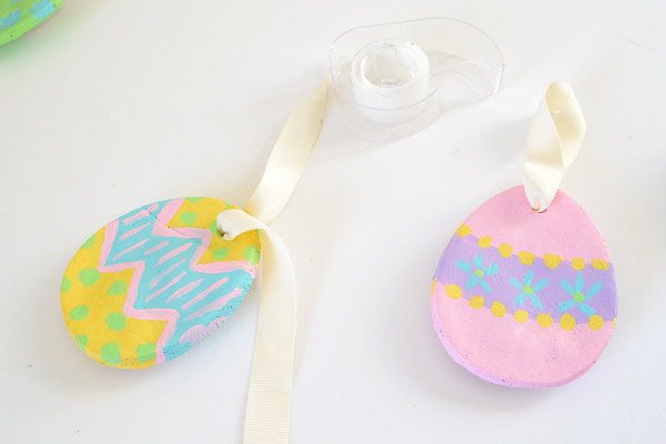 Thread string or ribbon through the hole and tie either a bow or a knot into a loop to hang your ornaments from.