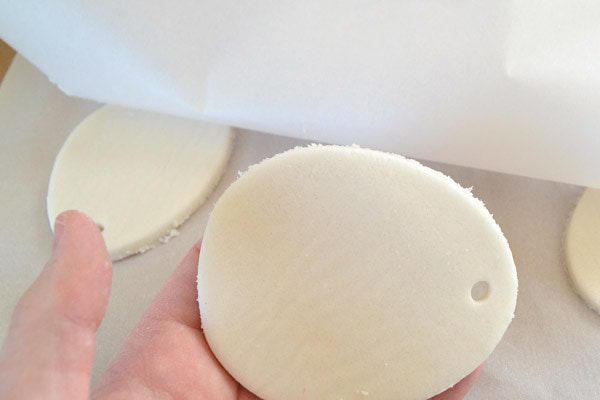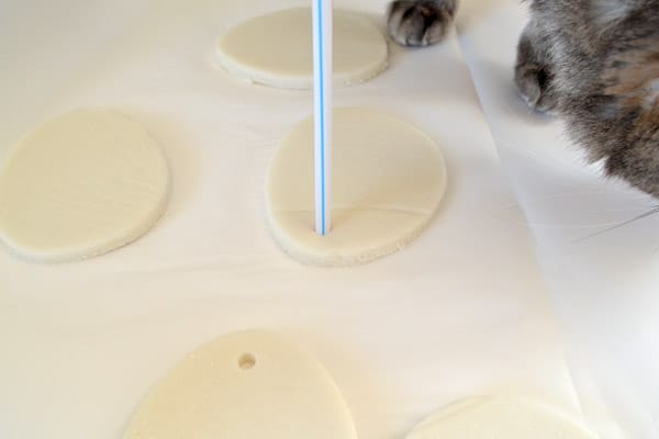 Peel away the excess dough from around your shapes and use your straw to cut out a “hanging hole”.