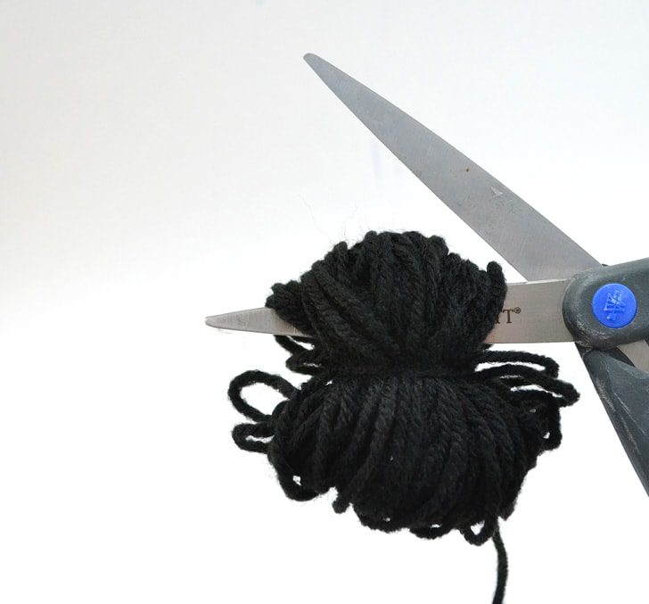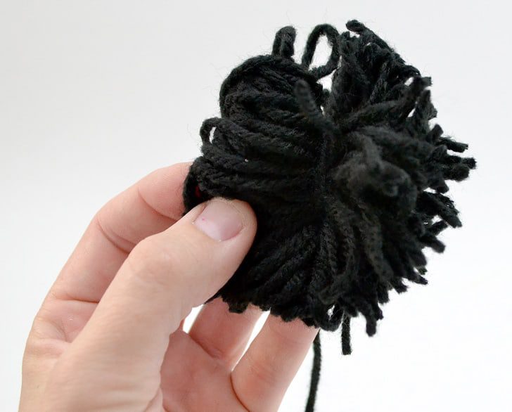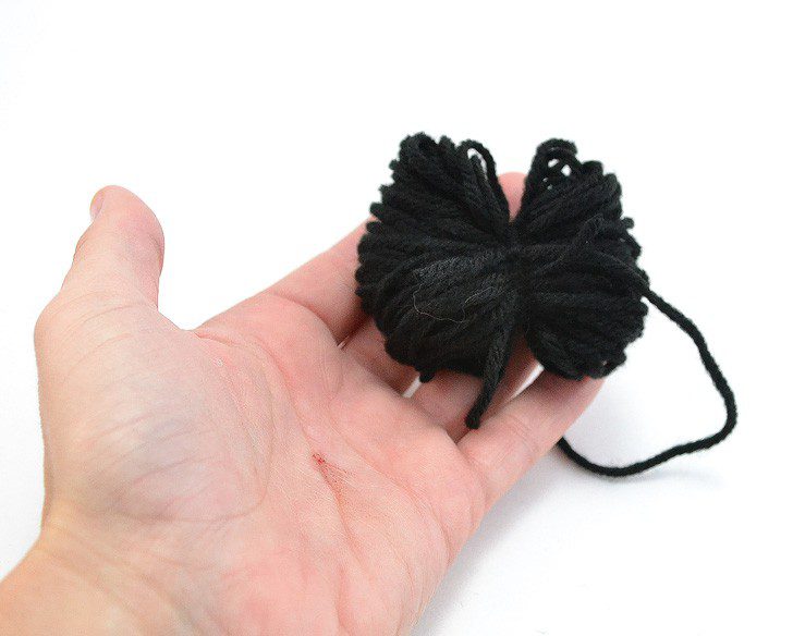 Wrap the two pieces that you used to bind the legs together around the pom-pom. Twist it shut and trim excess or shove it into the pom-pom.