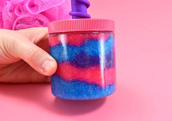 And with the unicorn craze in full swing, it seemed like a good time to knock out some unicorn sugar scrub and show you how to make it, too. In pretty, glittery colors this scrub really stands out from the homemade pack but when you add in that cute clay unicorn horn, well this is just about the cutest thing you can rest in your shower caddy, isn’t it?