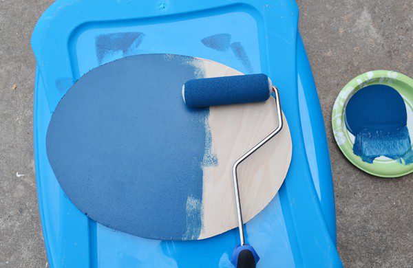 To get a nice, smooth surface use a foam roller. This one is specifically for wood cabinetry meaning I’m going to get a really smooth coat of paint down. A bumpy chalkboard with brush lines isn’t going to be so fab.